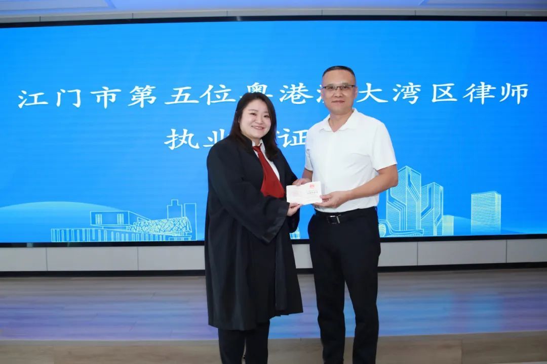 活动现场,彭高宴为第五位获准在我市执业的粤港澳大湾区律师冯颖琨颁证。冯律师的加入进一步充实了我市涉外法律服务队伍,为我市涉外法律服务增添了新的活力与动能。